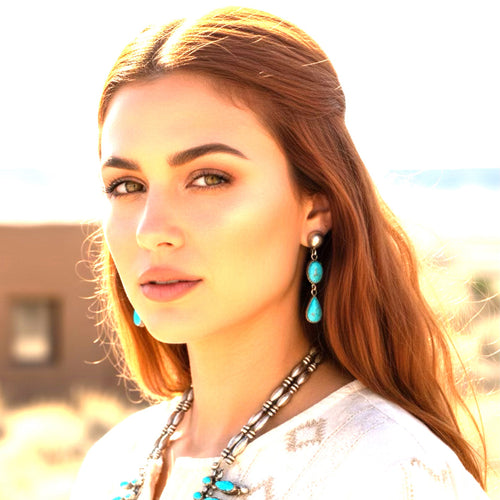 AAA Blue Ridge Turquoise Moon Earrings Dangles Southwest