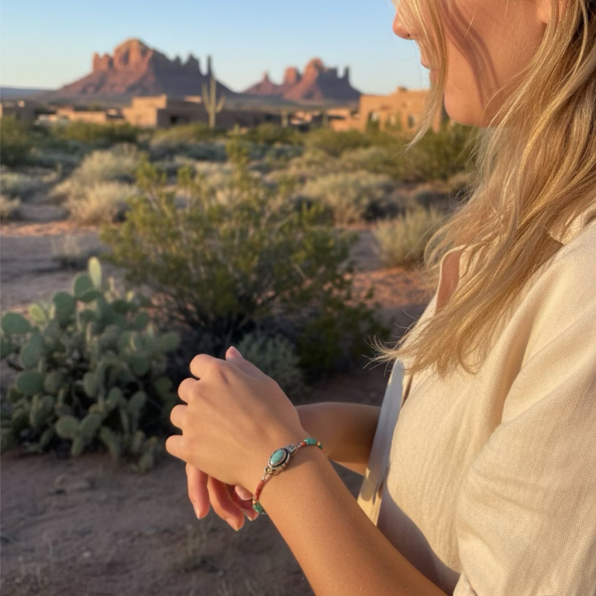 Rare multi-colored Carico Lake Turquoise stones and Spiny oyster with matching clasp by NewWorldGems. Accented with randomly placed 18K Solid Gold beads for sparkle! The birthstone of December, these graceful Turquoise beads measure 3-3.5mm. 7" overall length. One of a kind! These beads were cut over 25 years ago and no longer available.