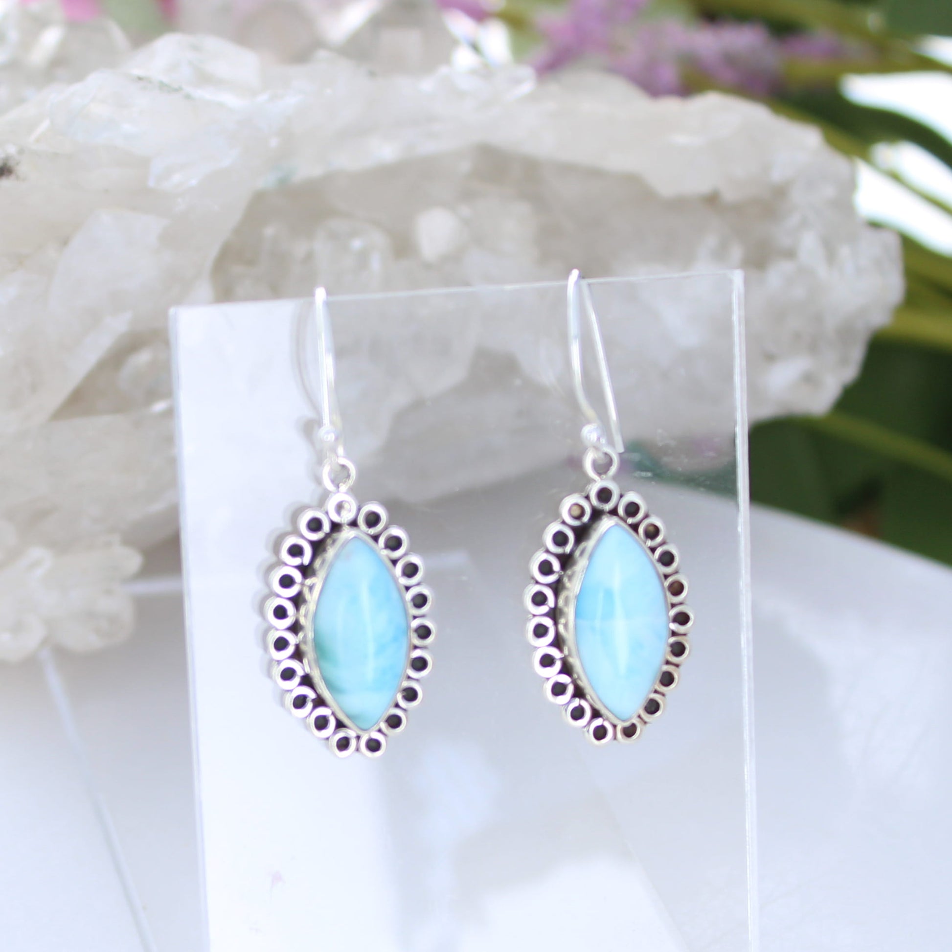 AAA Larimar Earrings Marquis Shape Sterling Silver NewWorldGems