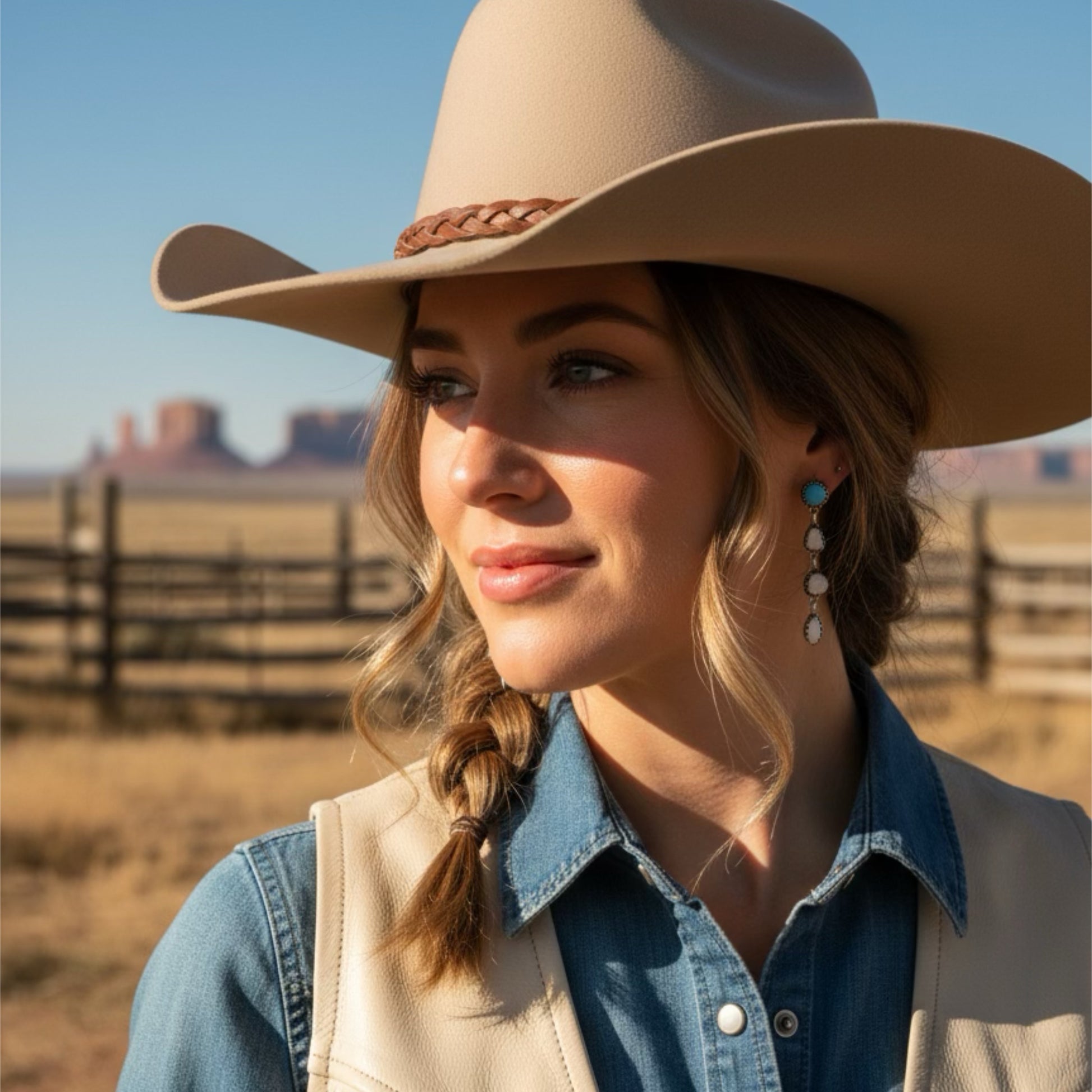 AAA Nevada LONE MOUNTAIN White Buffalo TURQUOISE Earrings 4 Stone Sterling