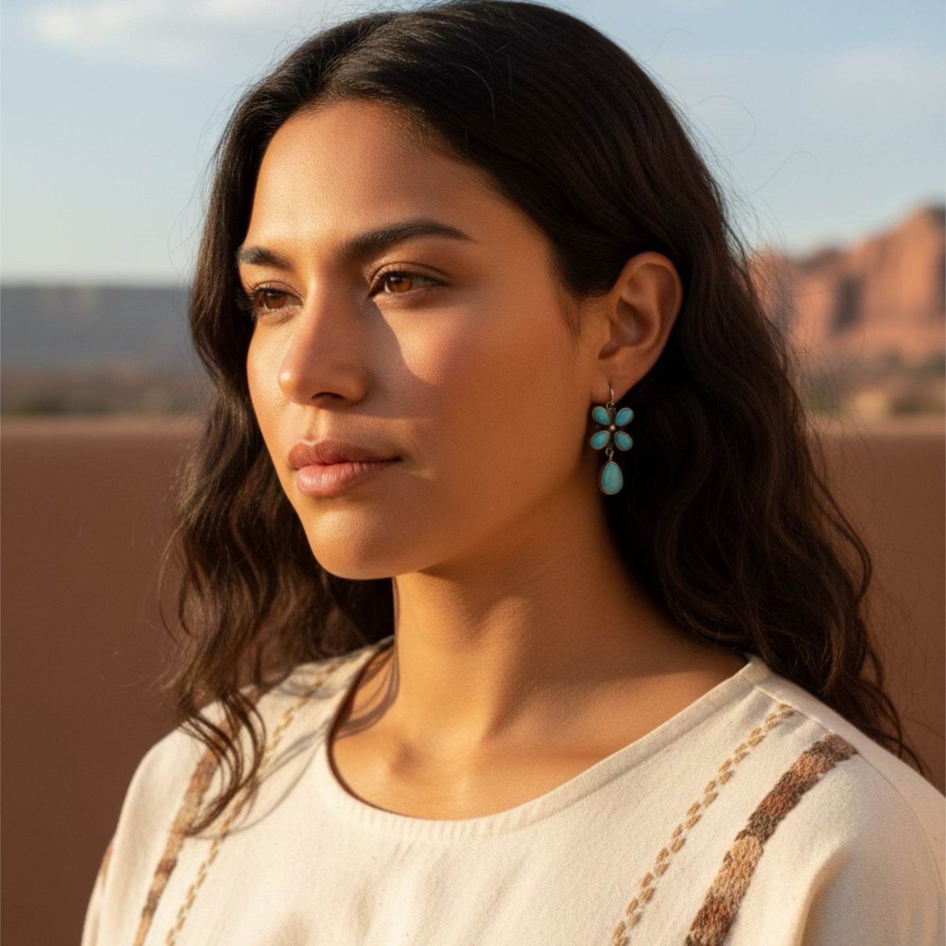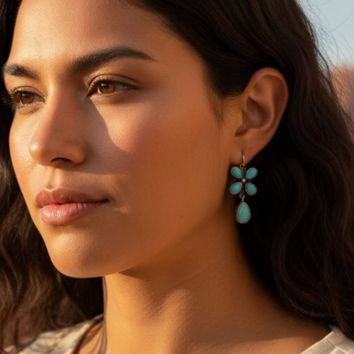 AAA Robins Egg Blue CAMPITOS TURQUOISE Flower Earrings Sterling