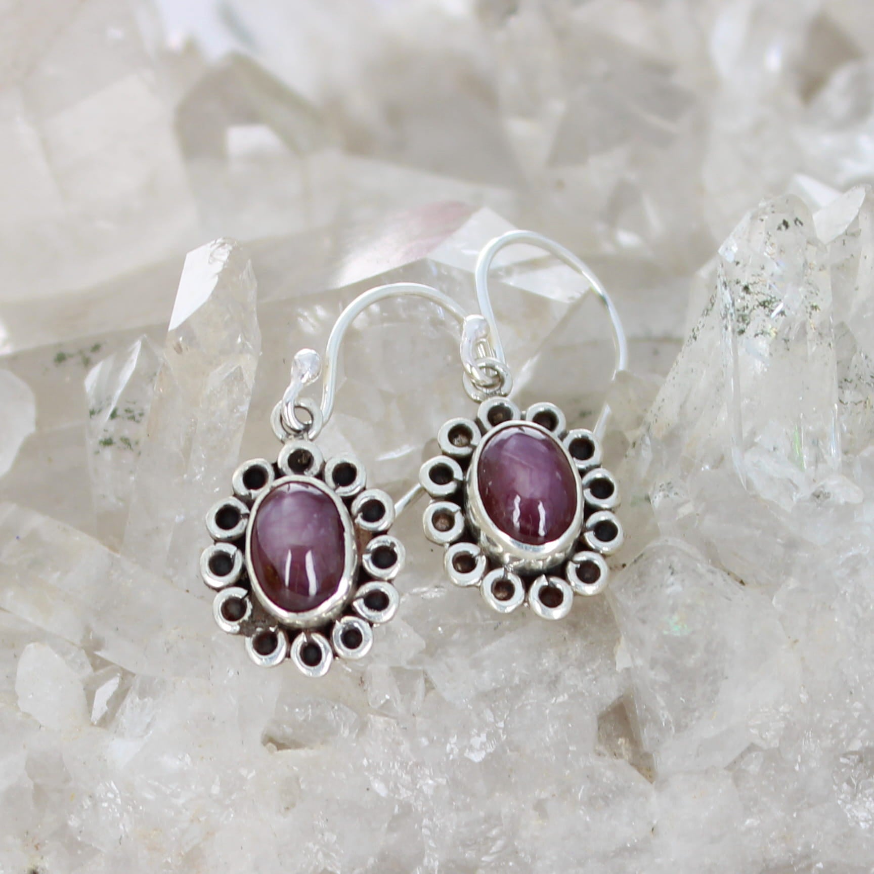 AAA Star Ruby Daisy Earrings Sterling Silver French Ear Wires NewWorldGems