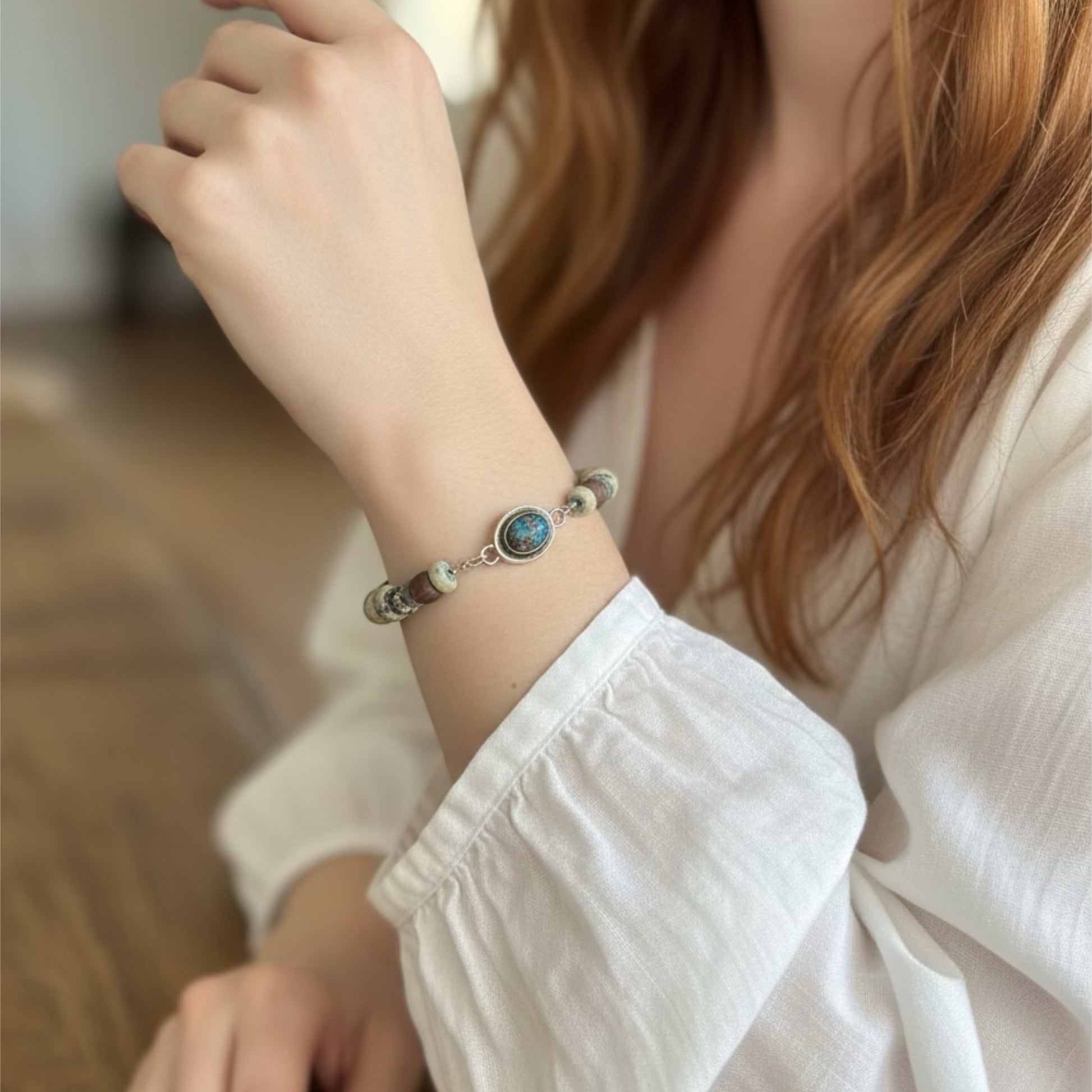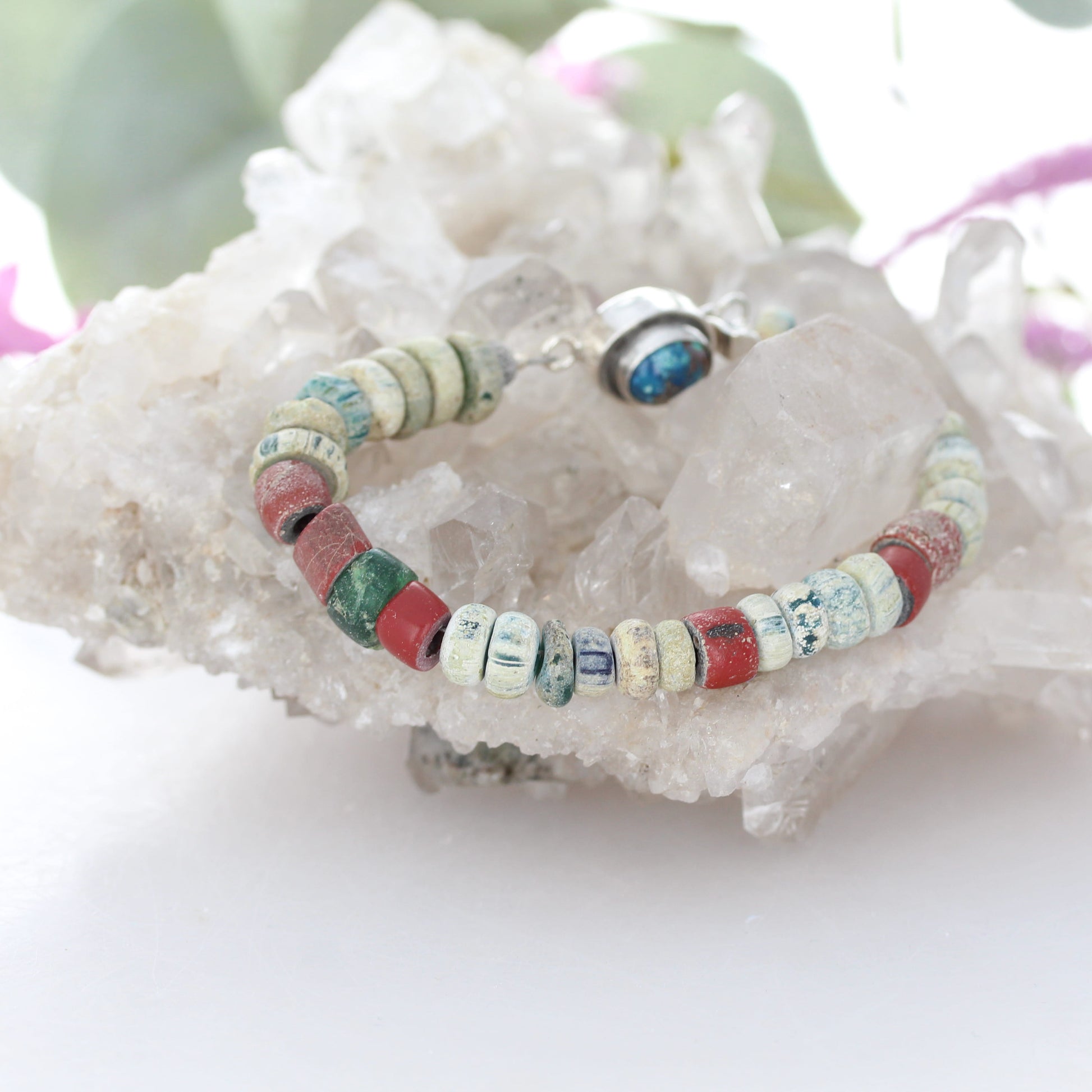 Djenne Mali Ancient Blue Glass "Dig Beads" from the African Trade bracelet with sterling silver, finished with our handmade Shattuckite .925 clasp..