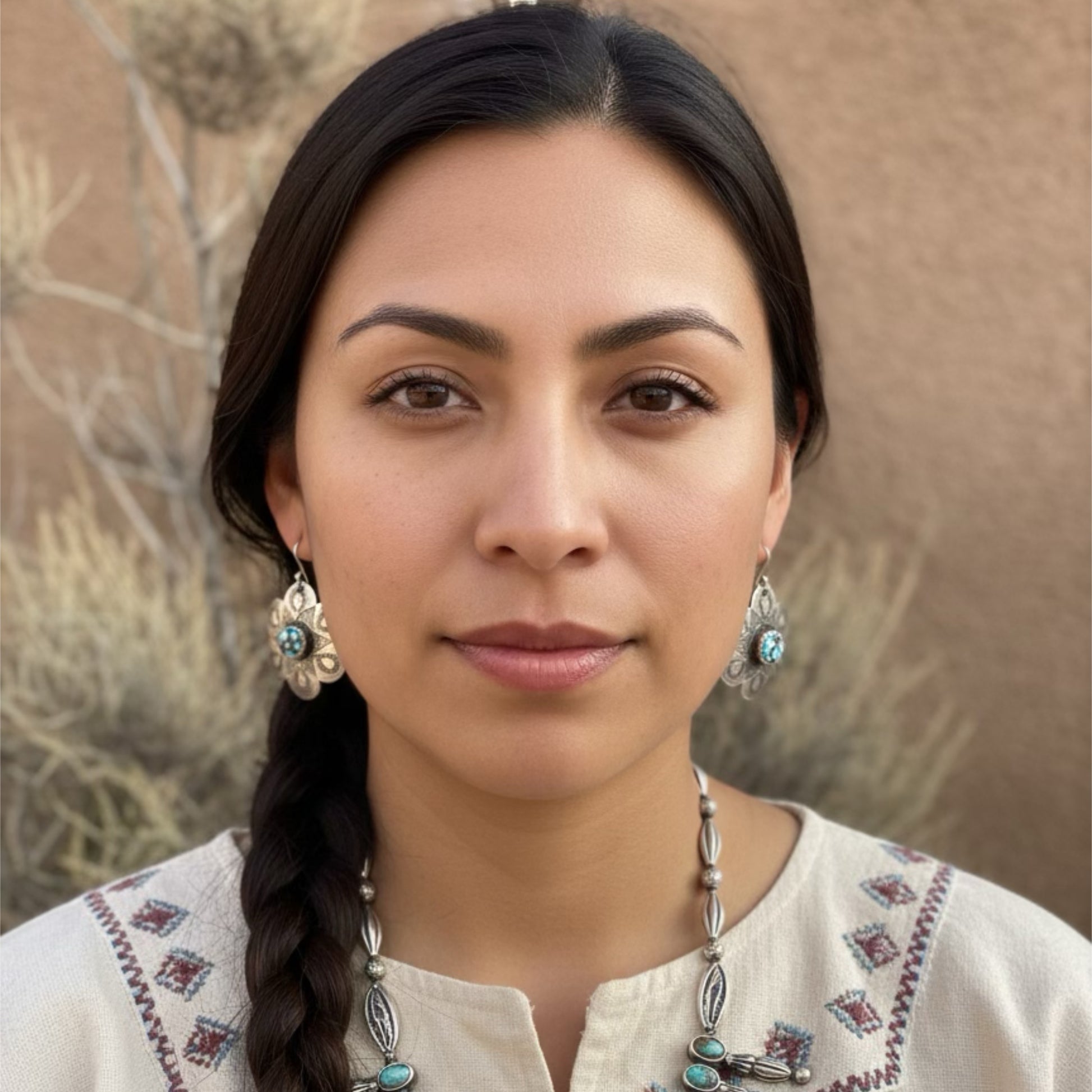 Beautiful Stamped EGYPTIAN TURQUOISE Sterling Flower Earrings