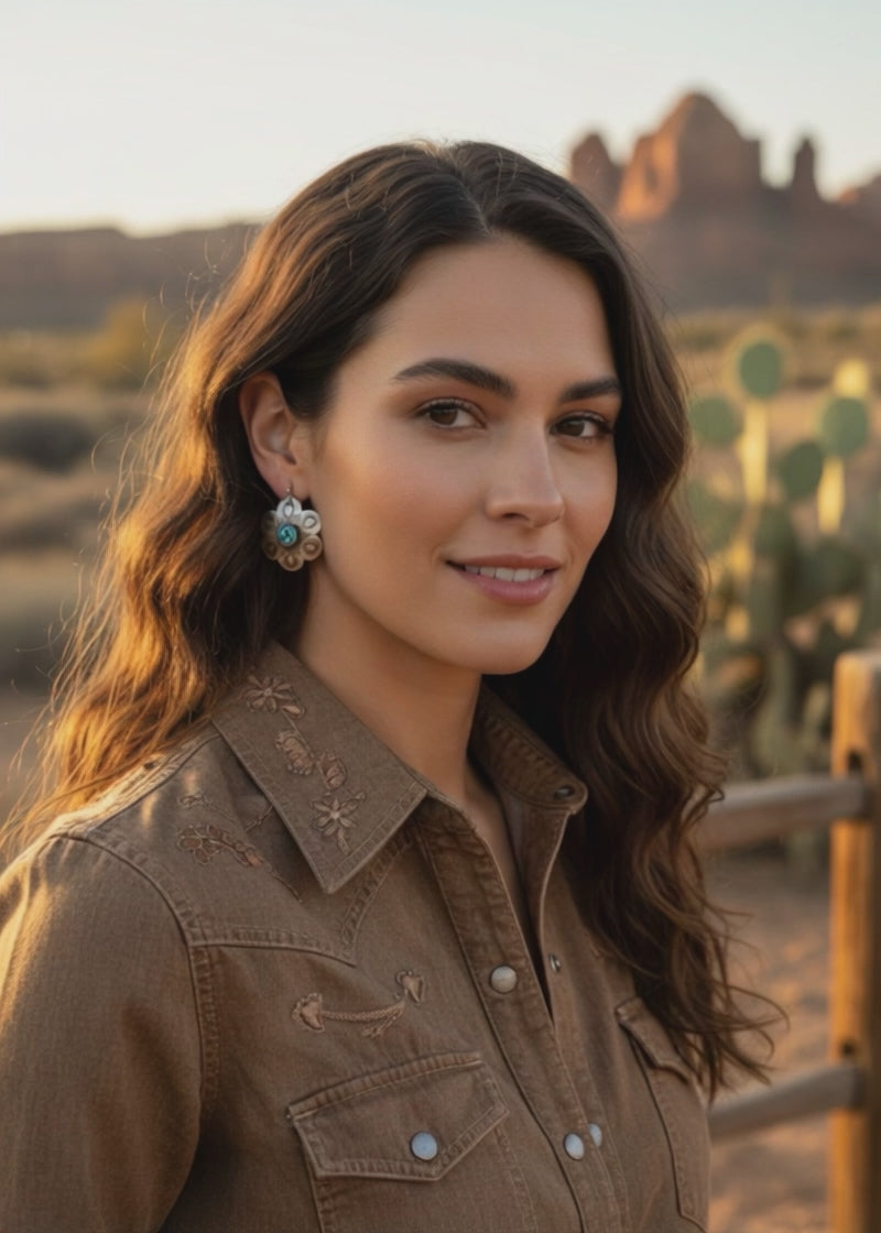 Beautiful Stamped EGYPTIAN TURQUOISE Sterling Flower Earrings