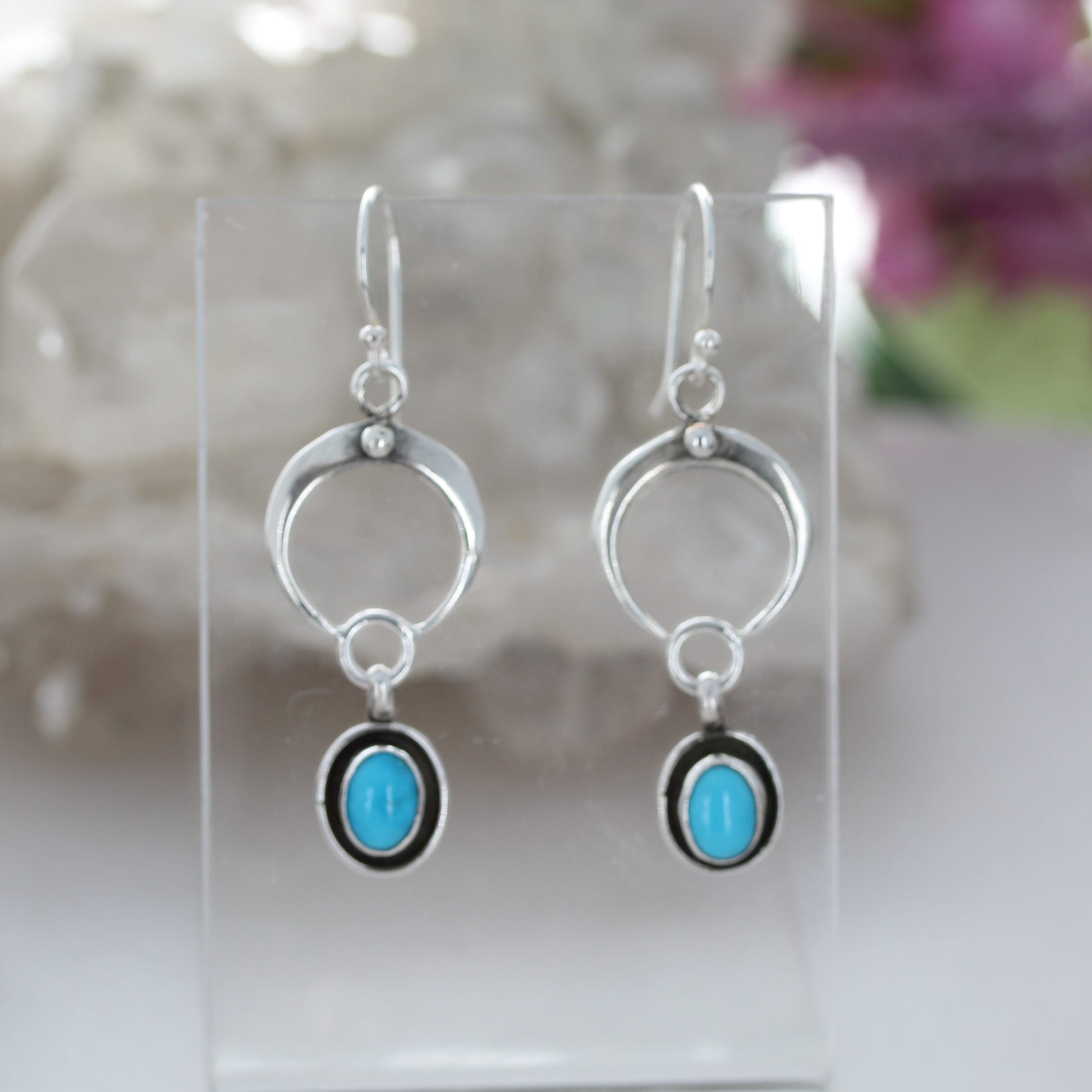 Blue Bird Turquoise Naja Moon Earrings Sterling Silver