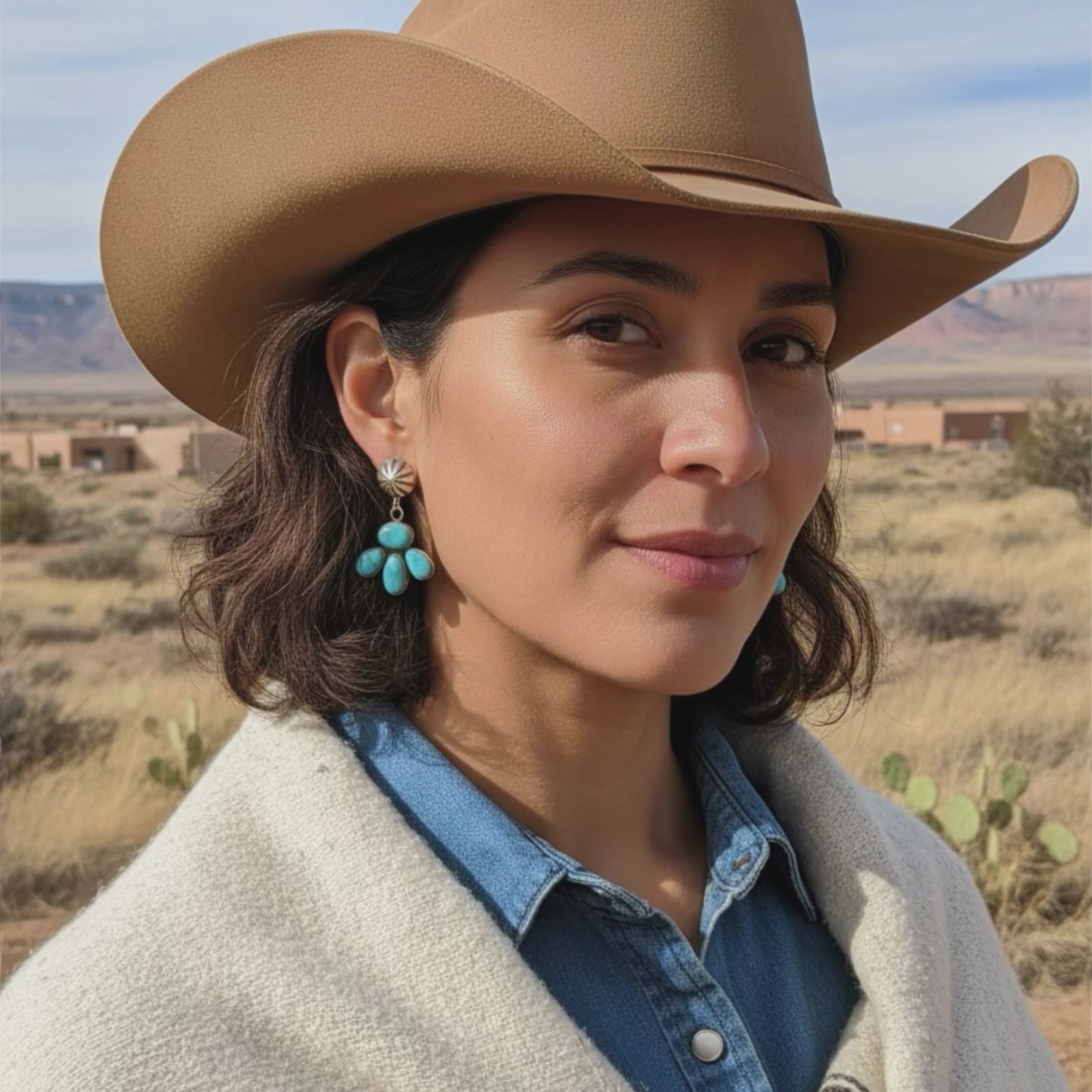 Blue Ridge Orvil Jack Turquoise Petal Earrings Sterling Silver 4 Stone