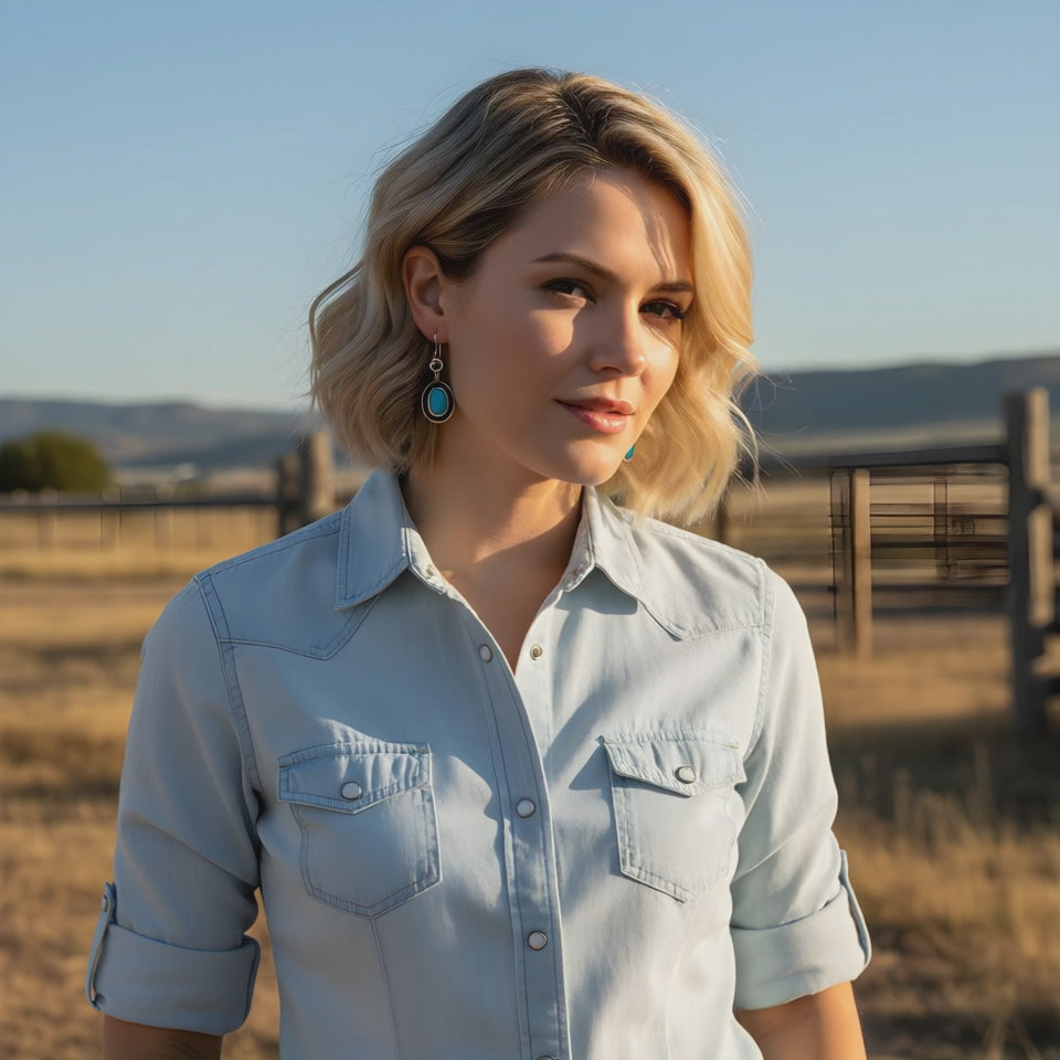 Blue Ridge Turquoise Oval Dangle Earrings Sterling