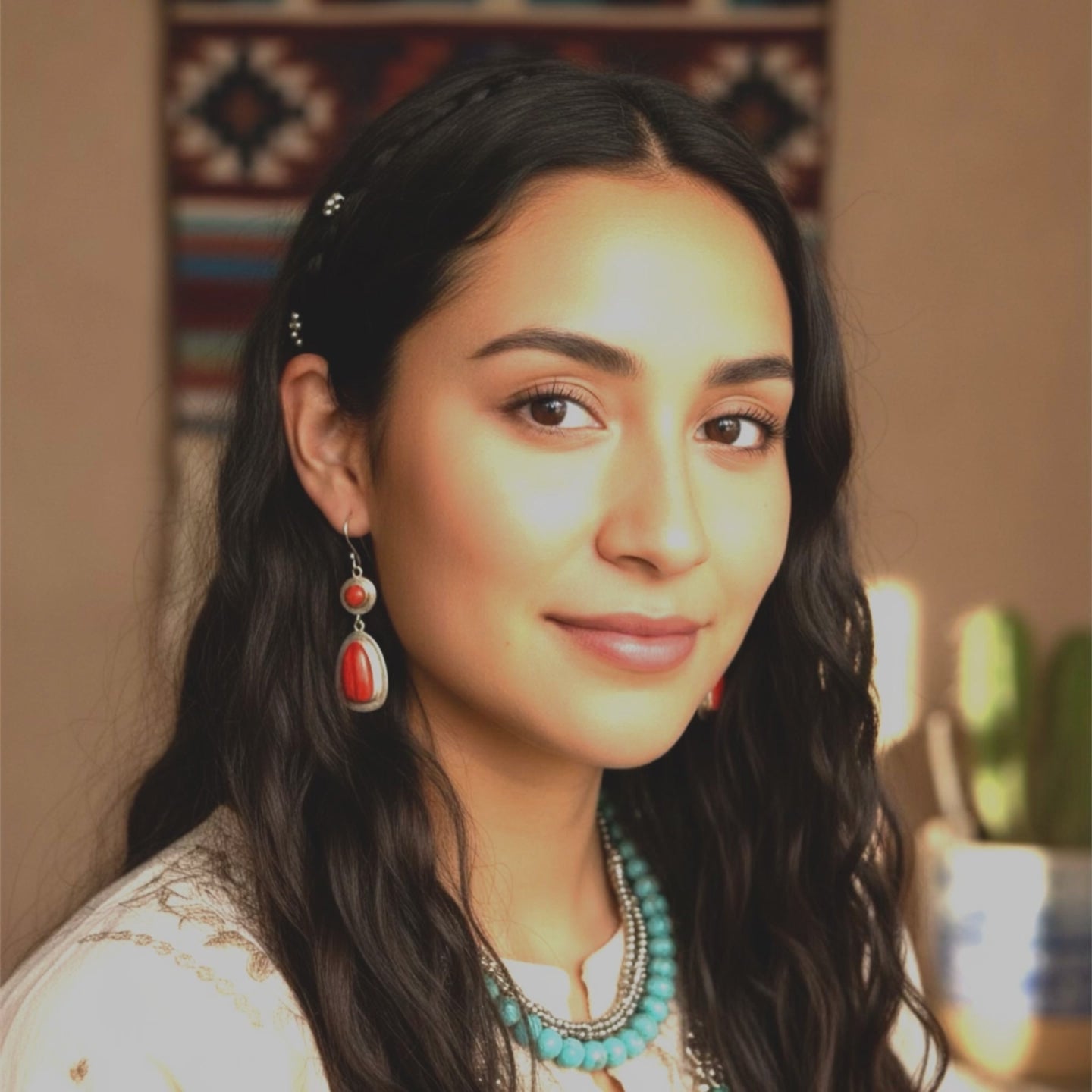 Beautiful vintage Rosarita glass treasures set in unique handmade earrings! These stunning deep red pieces are made from glass slag that originated from the smelting of actual gold on the sandy beaches of Alaska in the 1960s and 1970s. We have incorporated this exquisite, gold-infused glass into our sterling silver earring design along with Genuine Italian Coral {round stones on top}, handcrafted by Lezli Lowitz. Each earring measures 1.75 inches in length and features French ear wires.