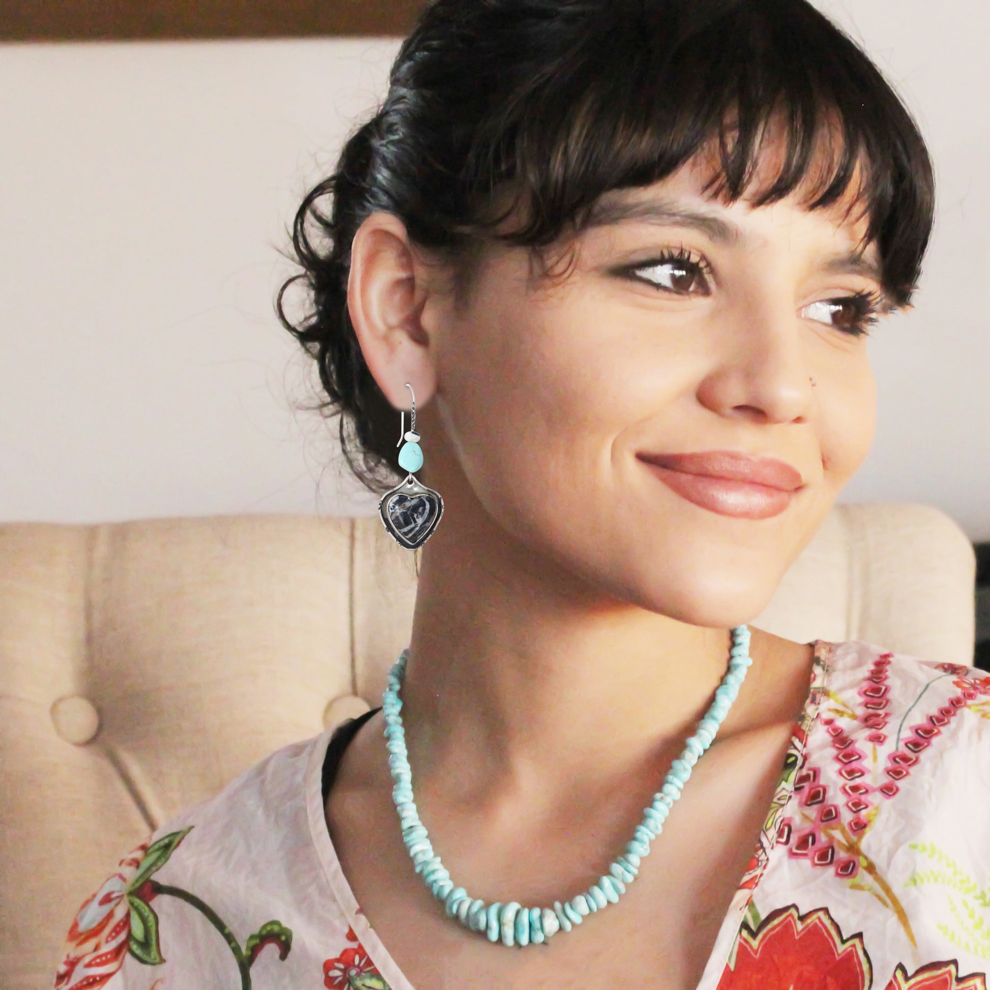 Hearts Lone Mountain and White Buffalo Turquoise Earrings Sterling
