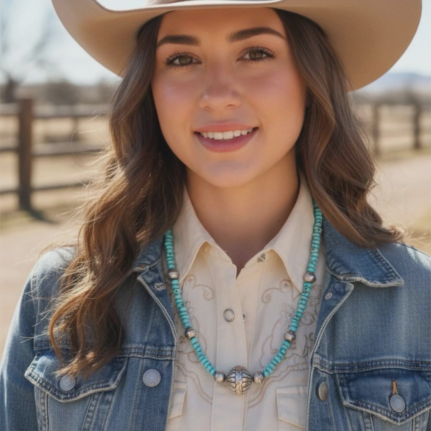 Lone Mountain Turquoise Necklace Sterling Bench Made Beads Southwest Style 21"