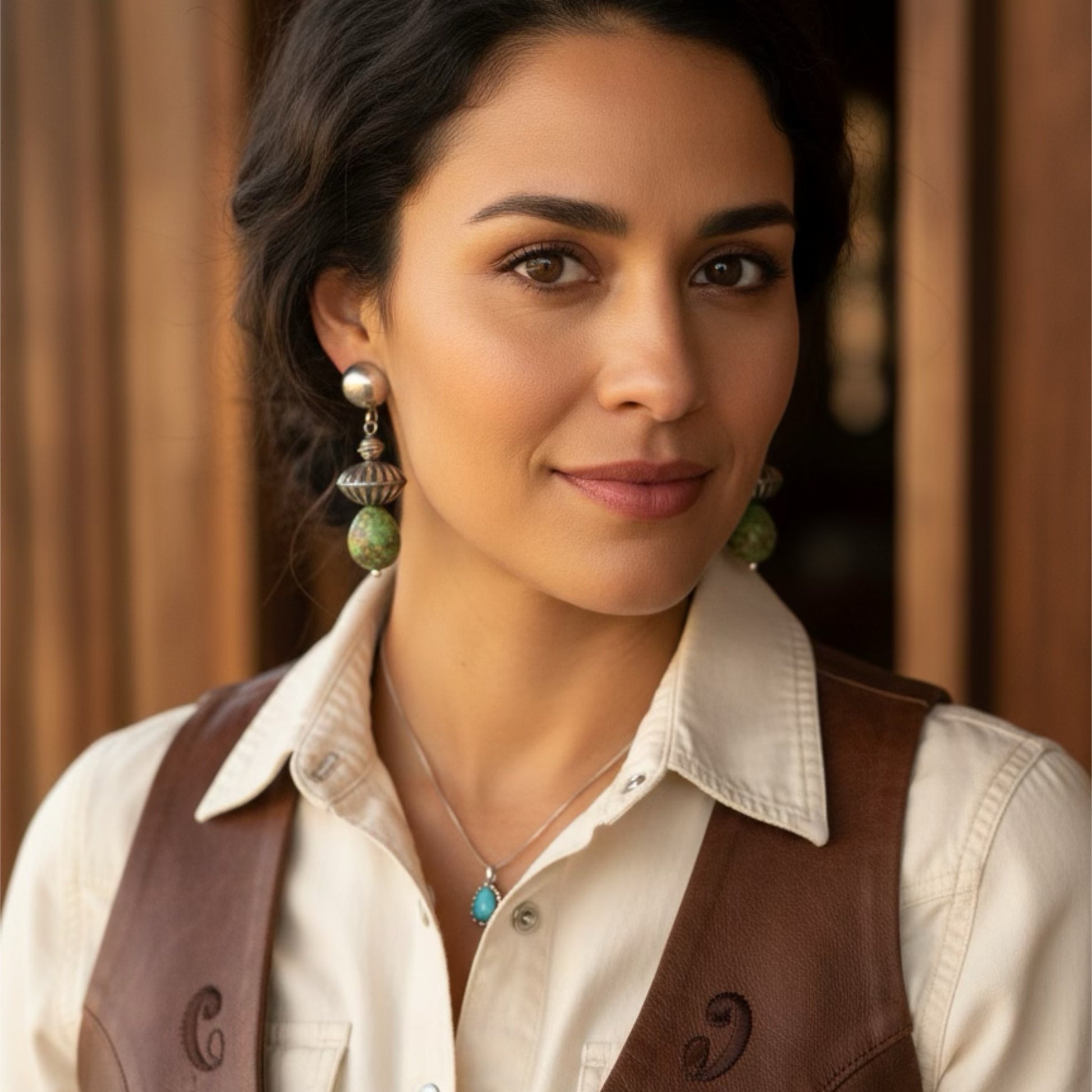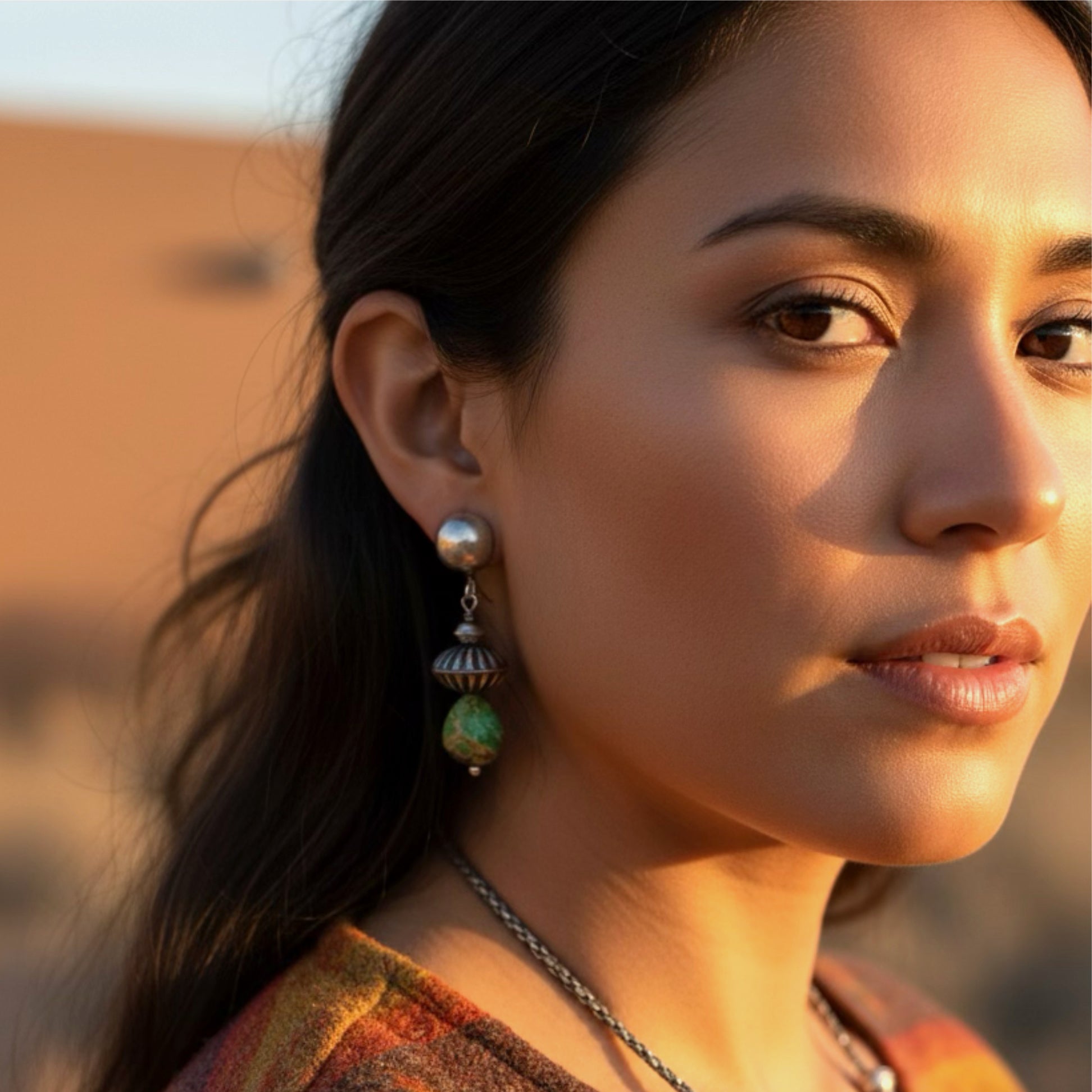 Gorgeous 100% natural turquoise from Sonora, Mexico with stunning natural lime green color! We set these beauties in our handcrafted sterling silver domed earrings. 16x13mm stone size. Large handmade 16mm Navajo Pearls!1.75" length overall.