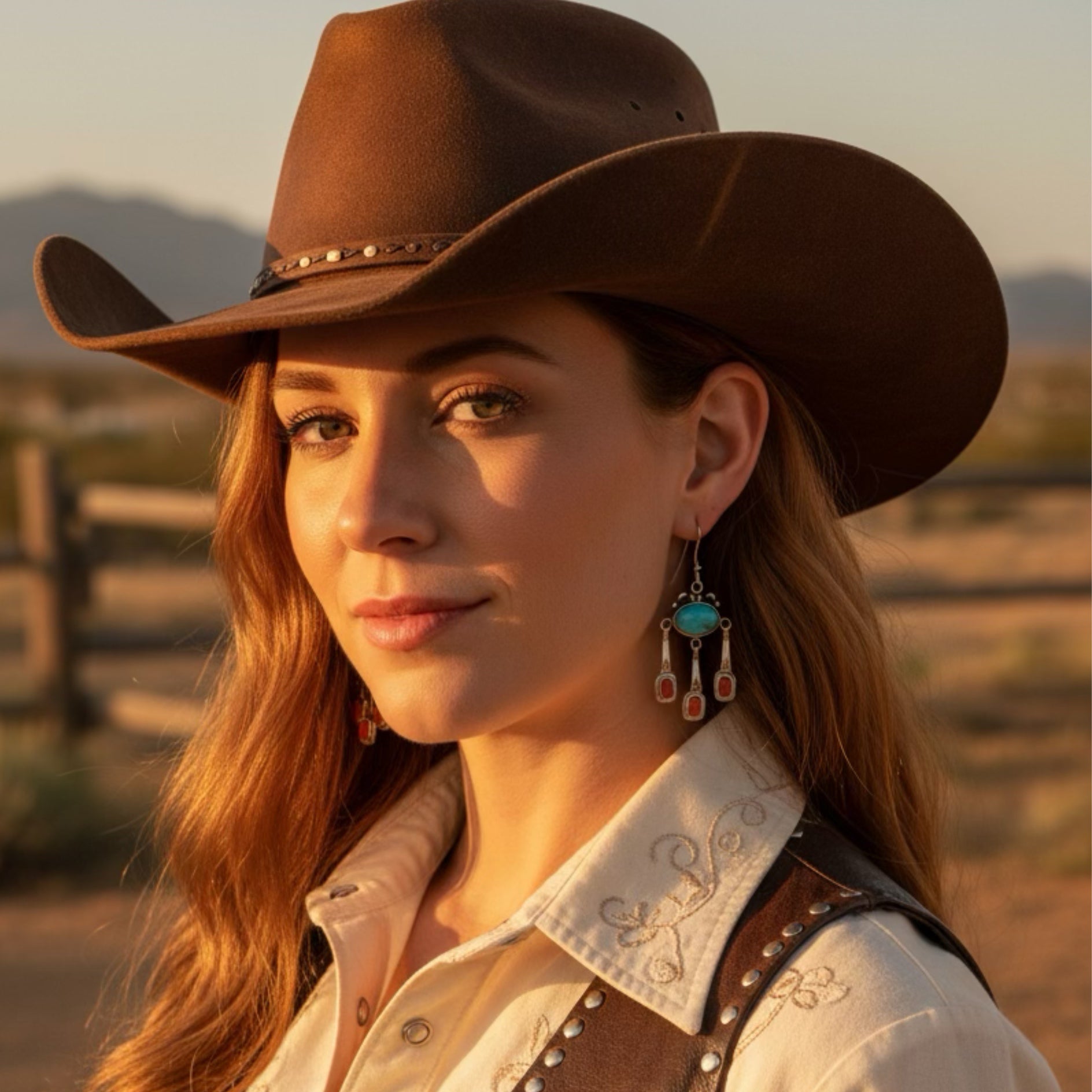 Sonoran Rose Turquoise with Spiny Oyster Boho Dangle Earrings Sterling