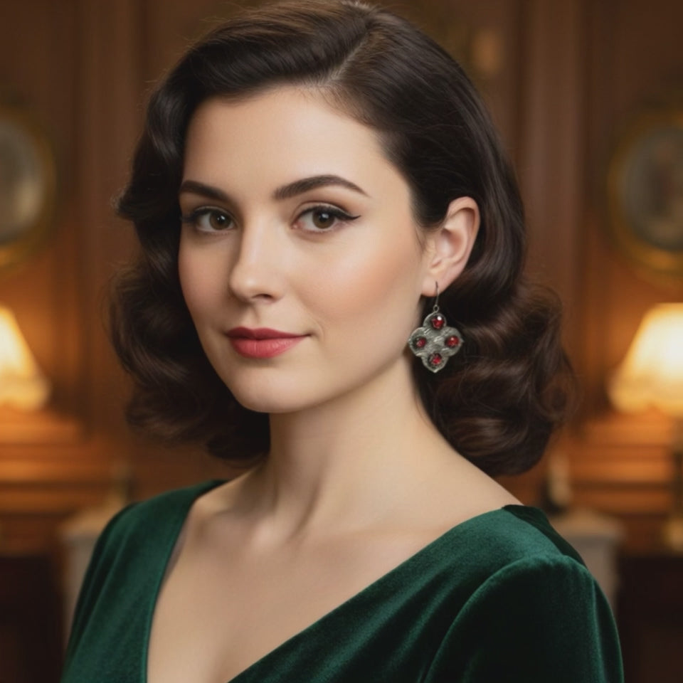 Sterling Silver and Garnet Stained Glass Renaissance Earrings