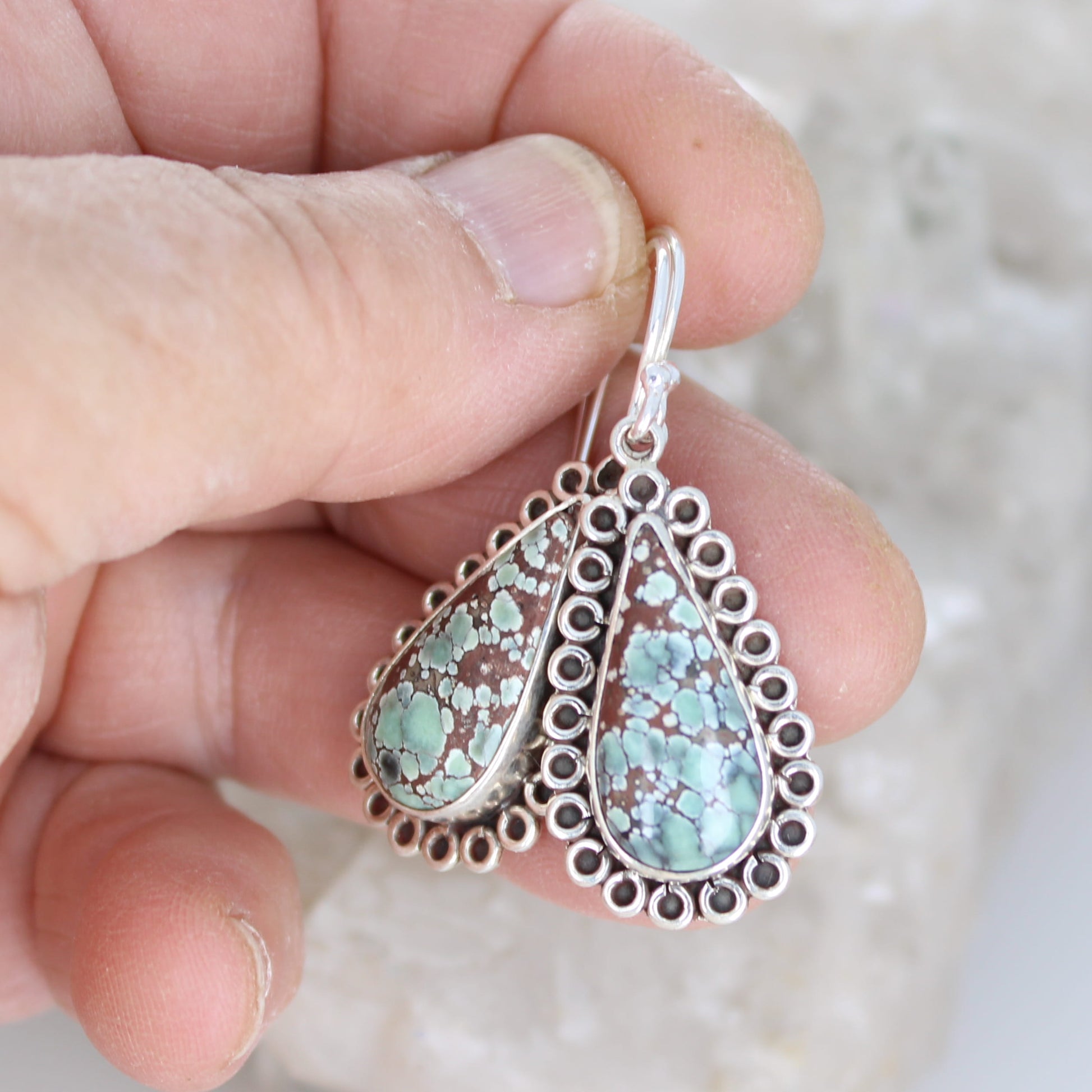 TIBETAN TURQUOISE Earrings Teardrops Steel Blue Sterling NewWorldGems
