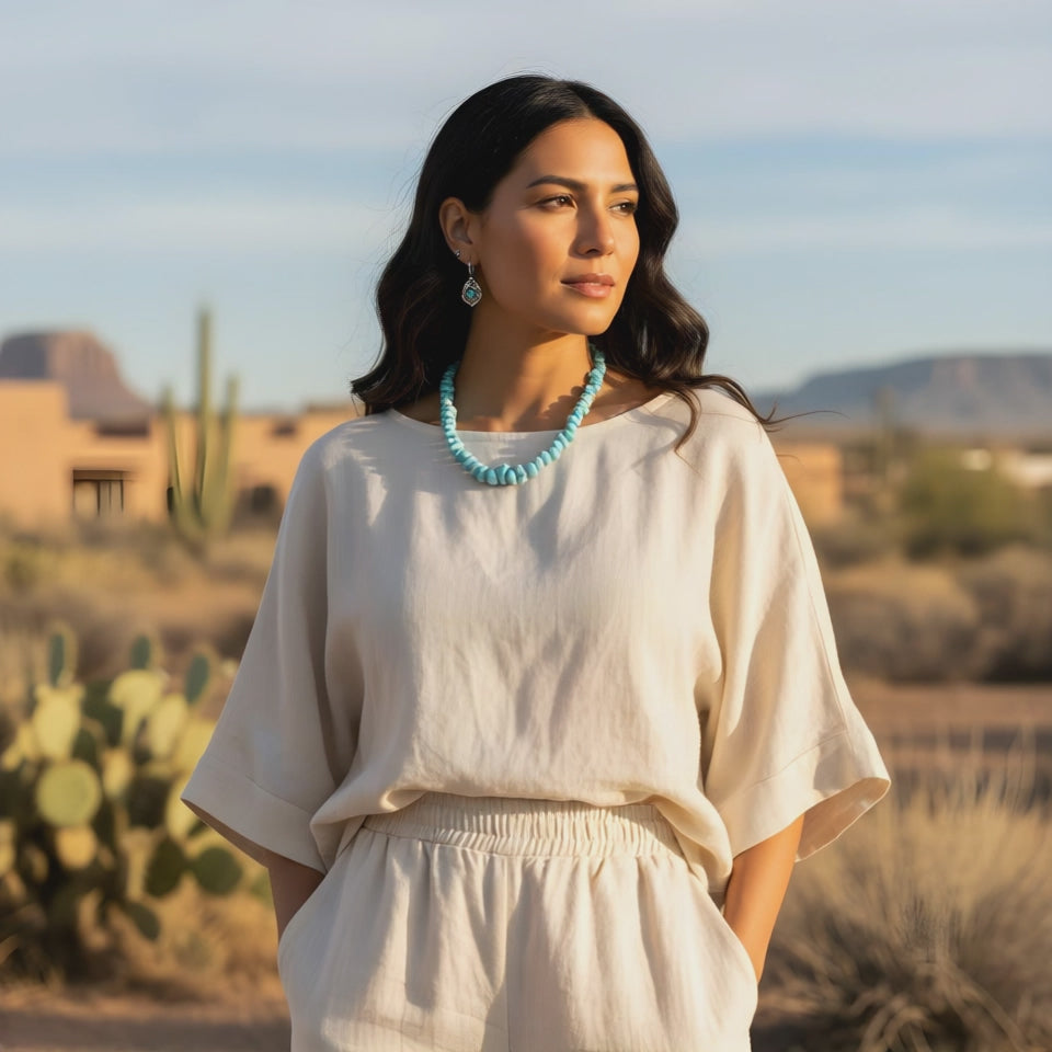 White Creek Turquoise Beads Nugget Necklace Sterling Southwest Elegance